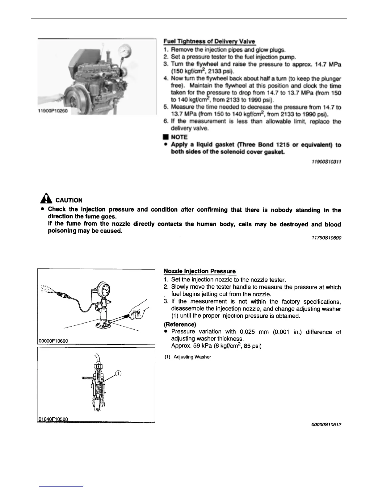 Kubota U25-3 - Fuel Tightness of Delivery Valve; Nozzle Injection Pressure