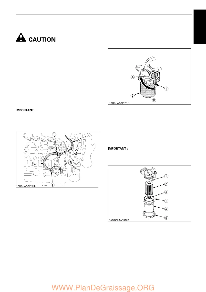 Kubota V2403-M-E - Checking the Fuel Pipes; Cleaning the Fuel Filter Pot