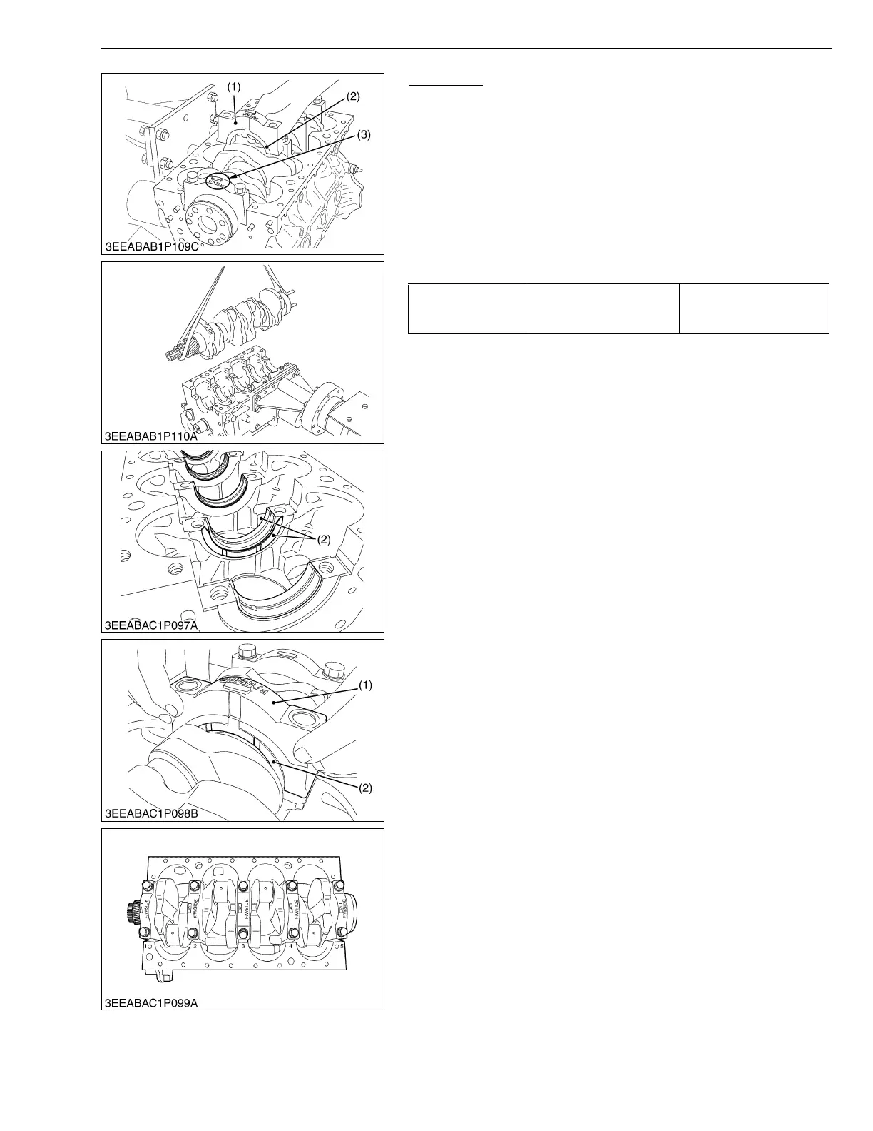 • Reassemble the thrust bearing (2), with the oil groove facing