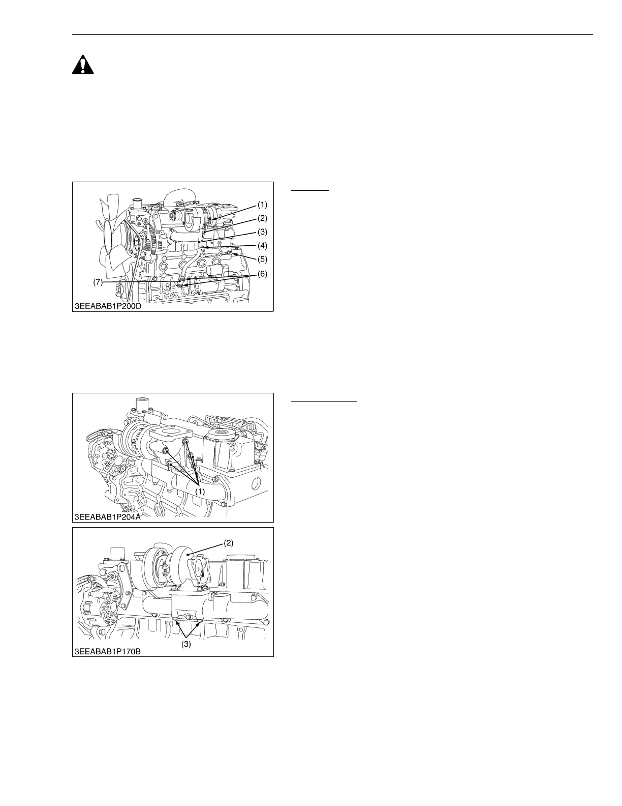• While the engine is running and or just after it stops, the turbocharger is hot, be careful not to touch the