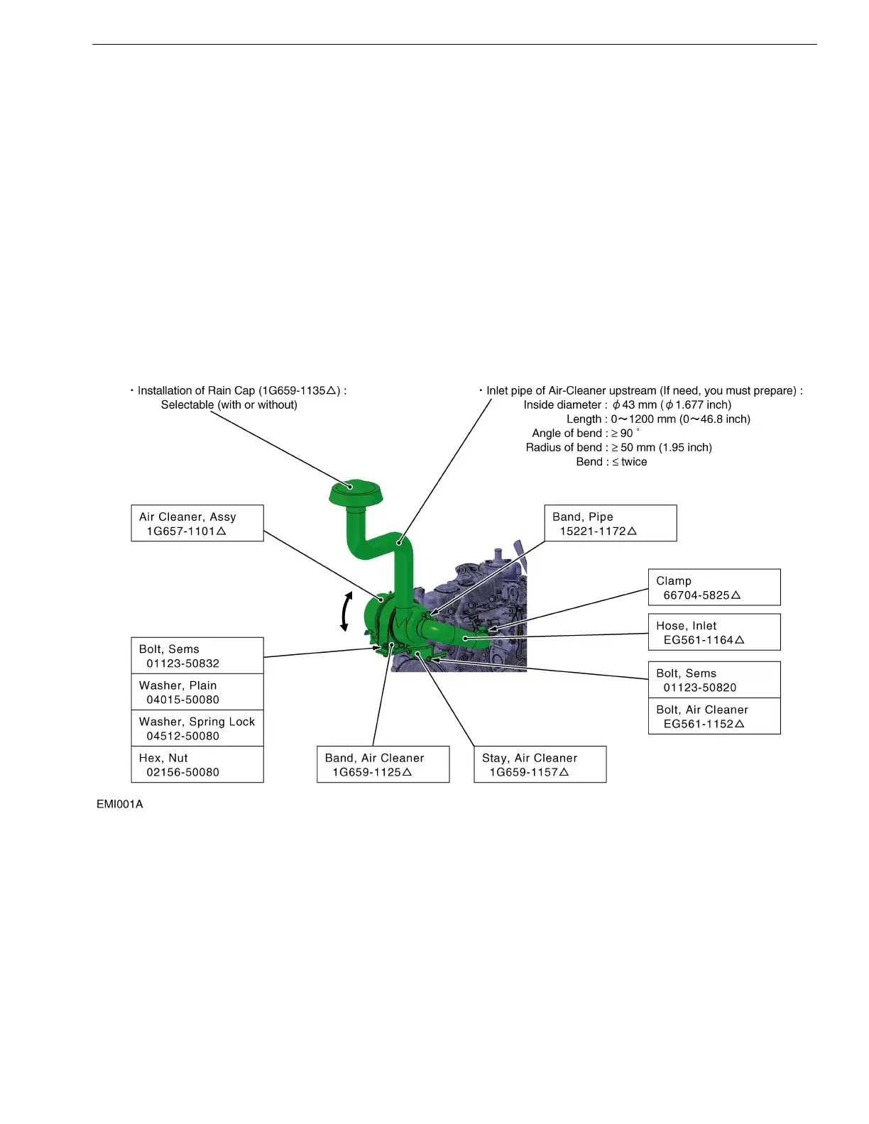 • Kubota offers standard Air-cleaner kit. The intake parts should be installed as shown in figure below.