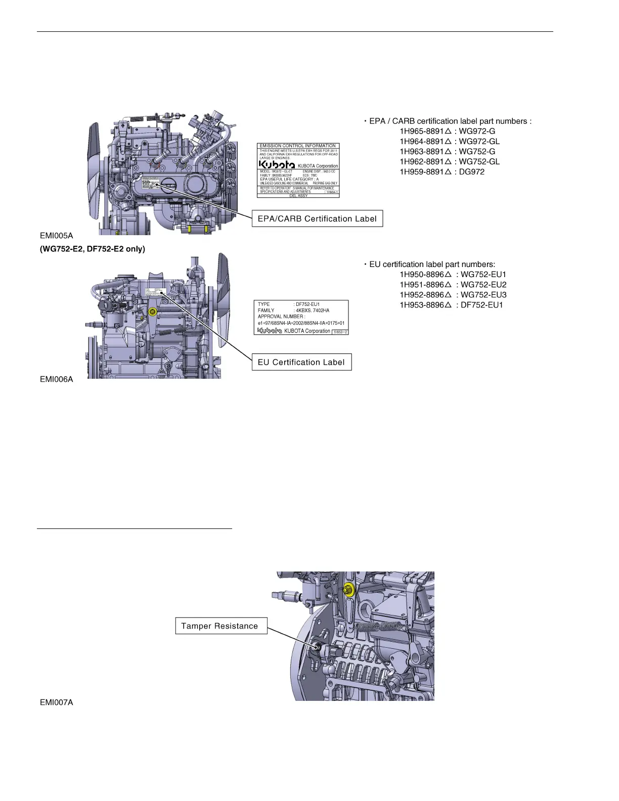 • Any modifications to the tamper resistance parts on this engine will cause this engine to be in noncompliance with