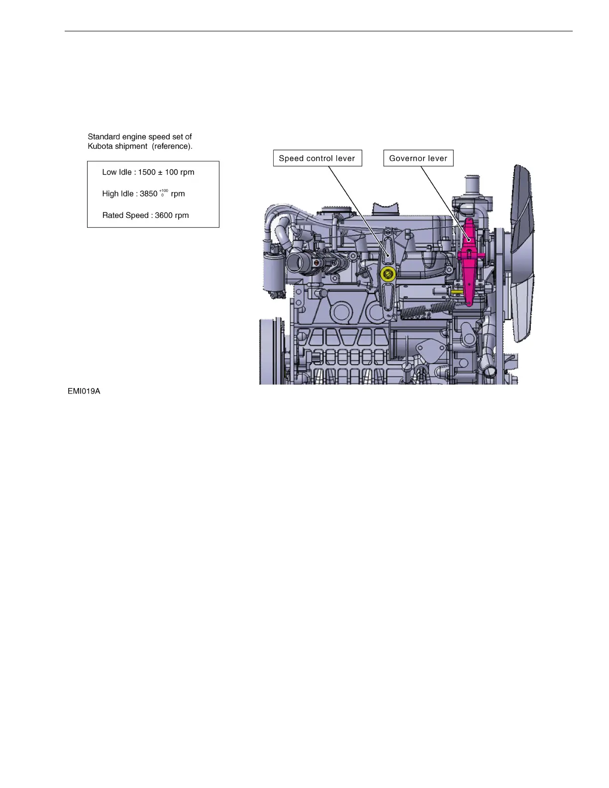 • You should use the speed control lever and/or the governor lever to change engine speed.