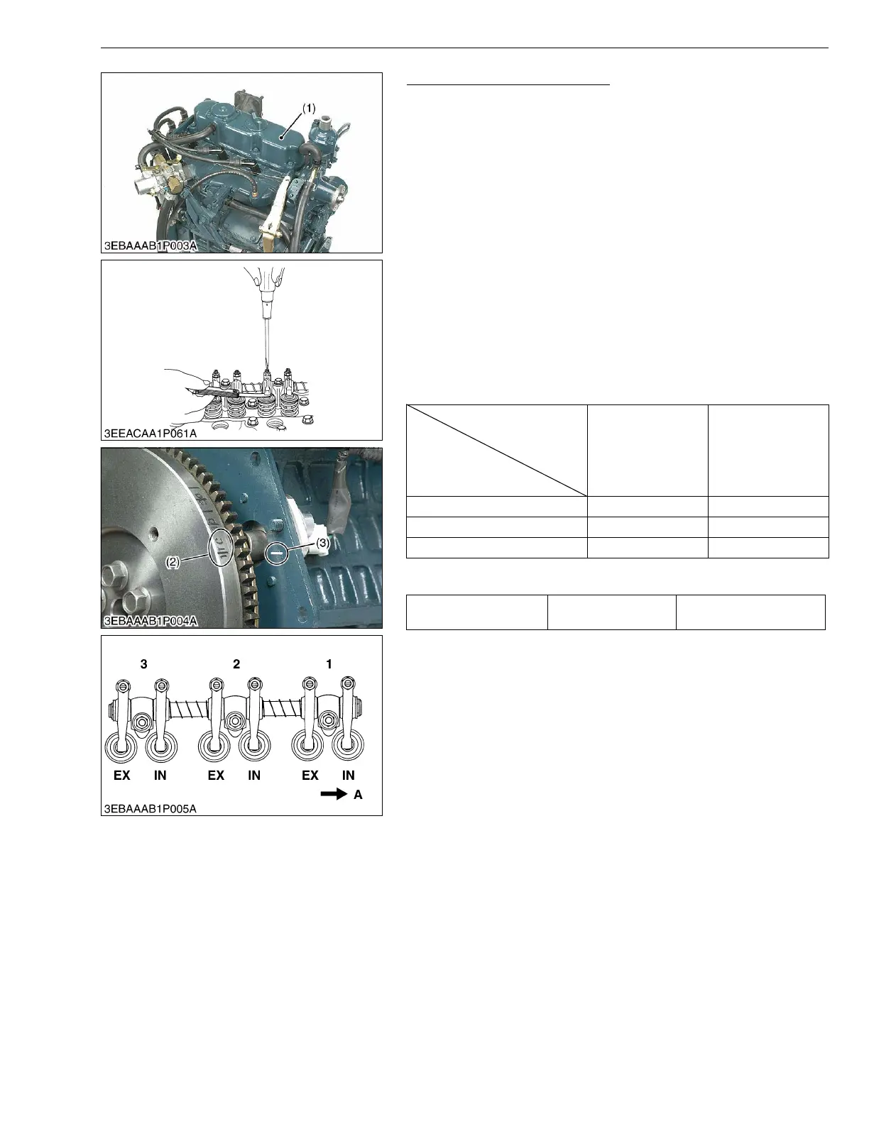 2. Align the “1TC” mark (2) on the flywheel and alignment mark (3)
