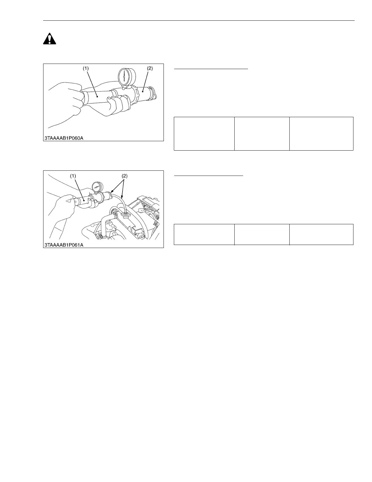 1. Set a radiator tester (1) and an adaptor (2) on the radiator cap.