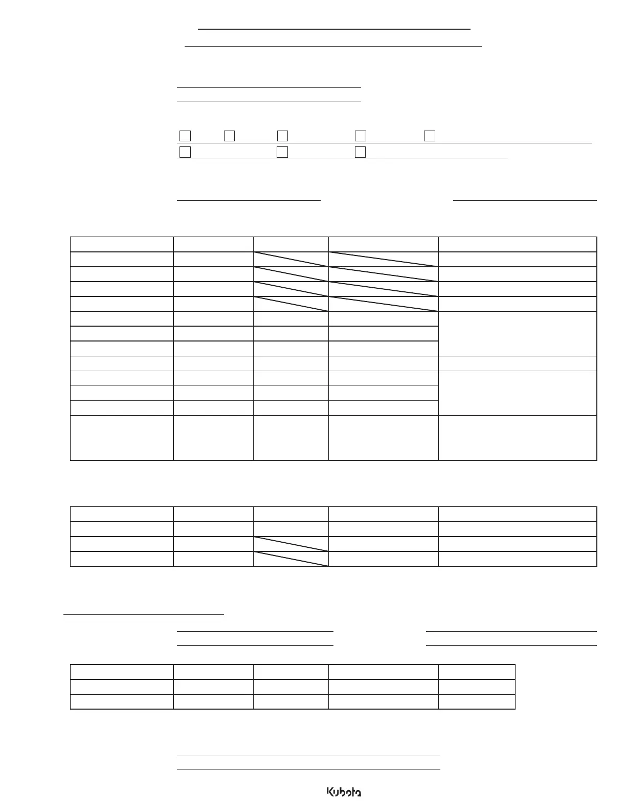 TO BE COMPLETED BY KUBOTA