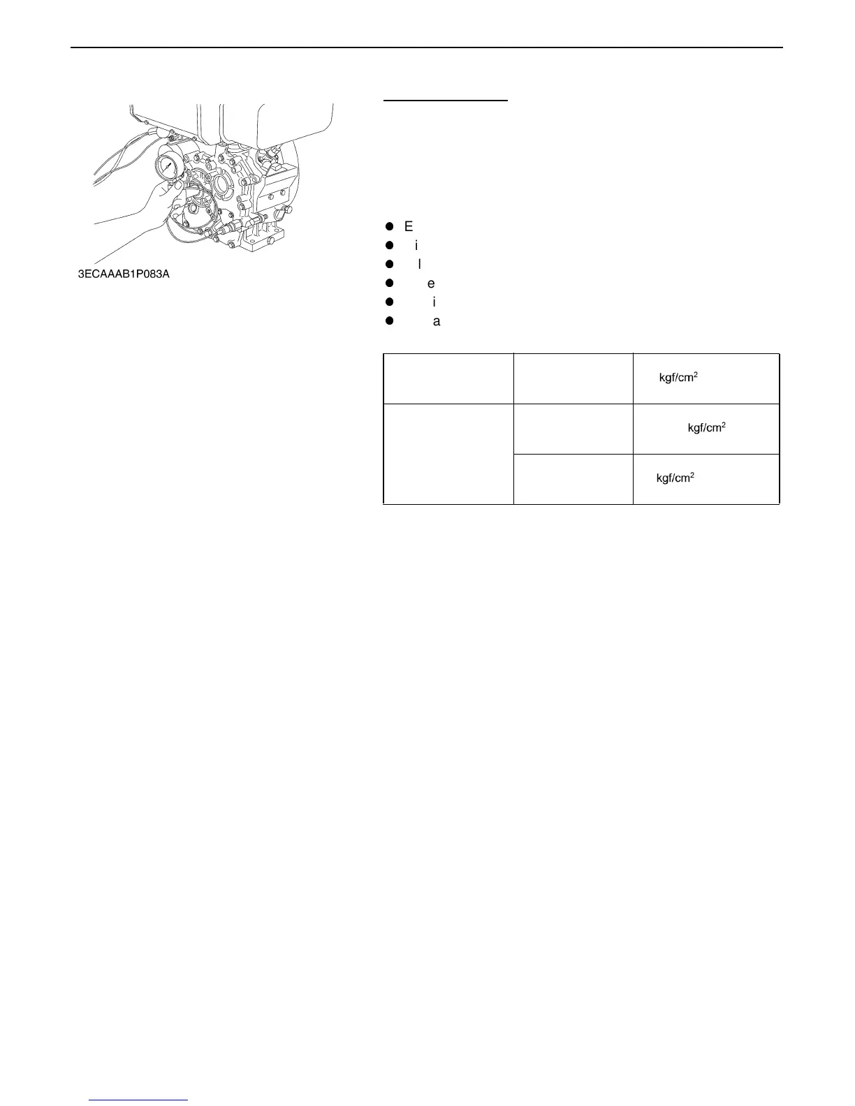 2. Start the engine. After warming up, measure the oil pressure