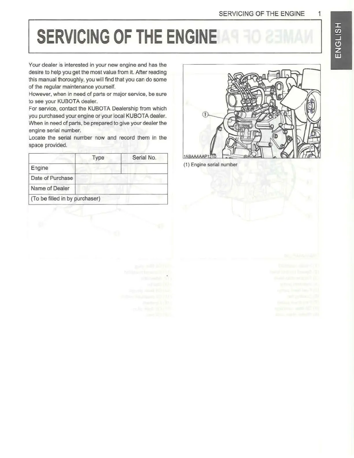 (1) Engine serial number