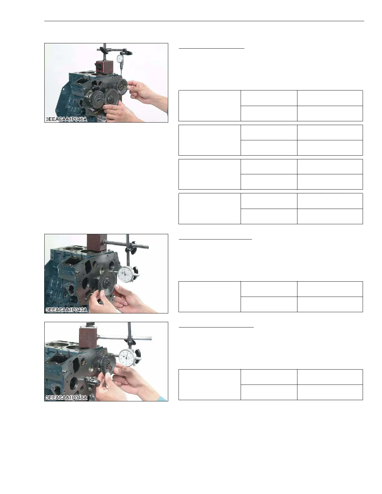 1. Set a dial indicator with its tip on the idle gear.