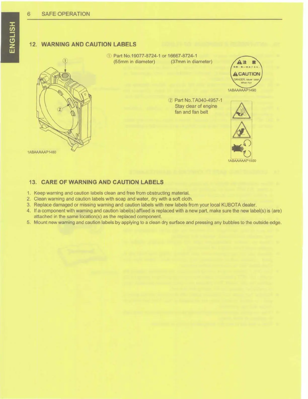 13. CARE OF WARNING AND CAUTION LABELS