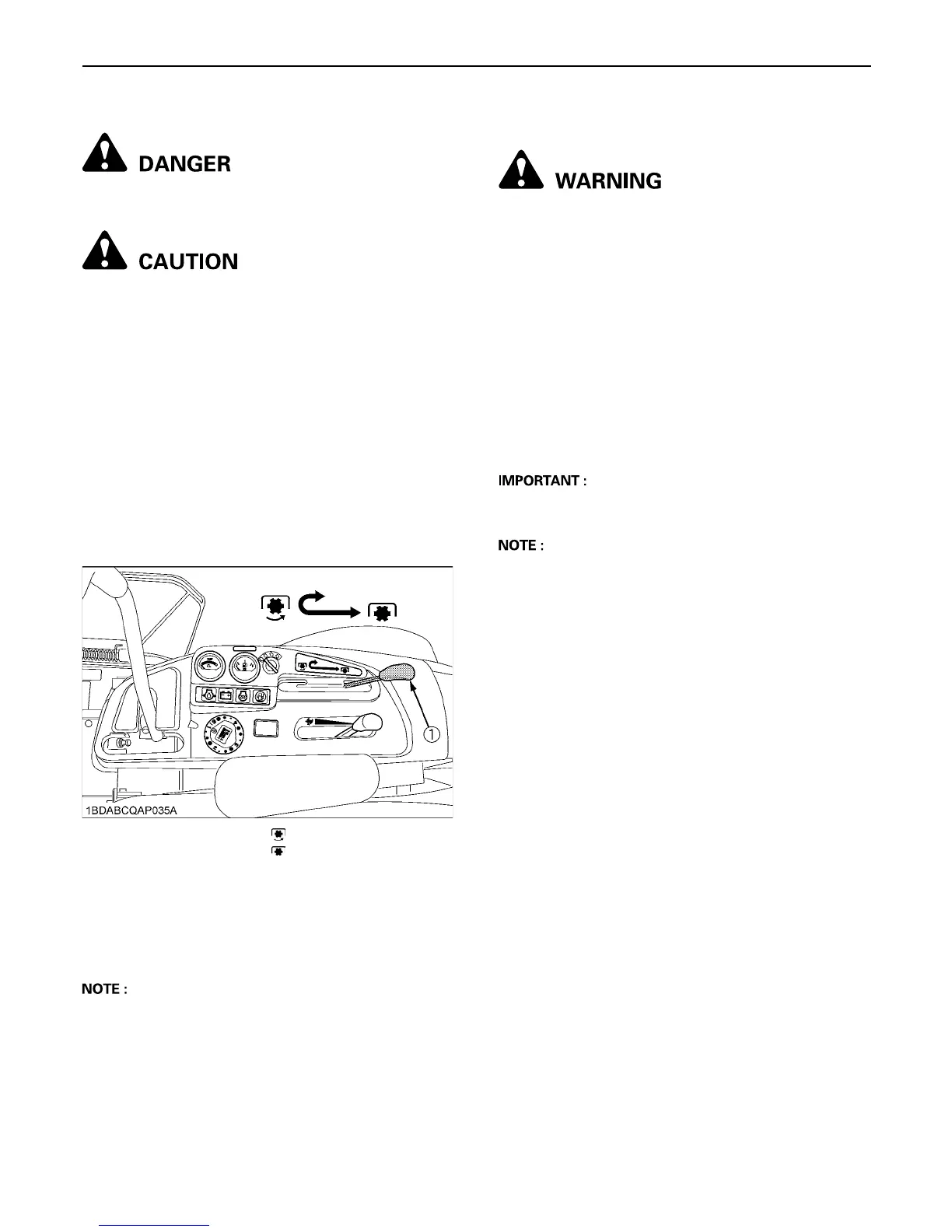 A Be sure to disengage the PTO clutch of the