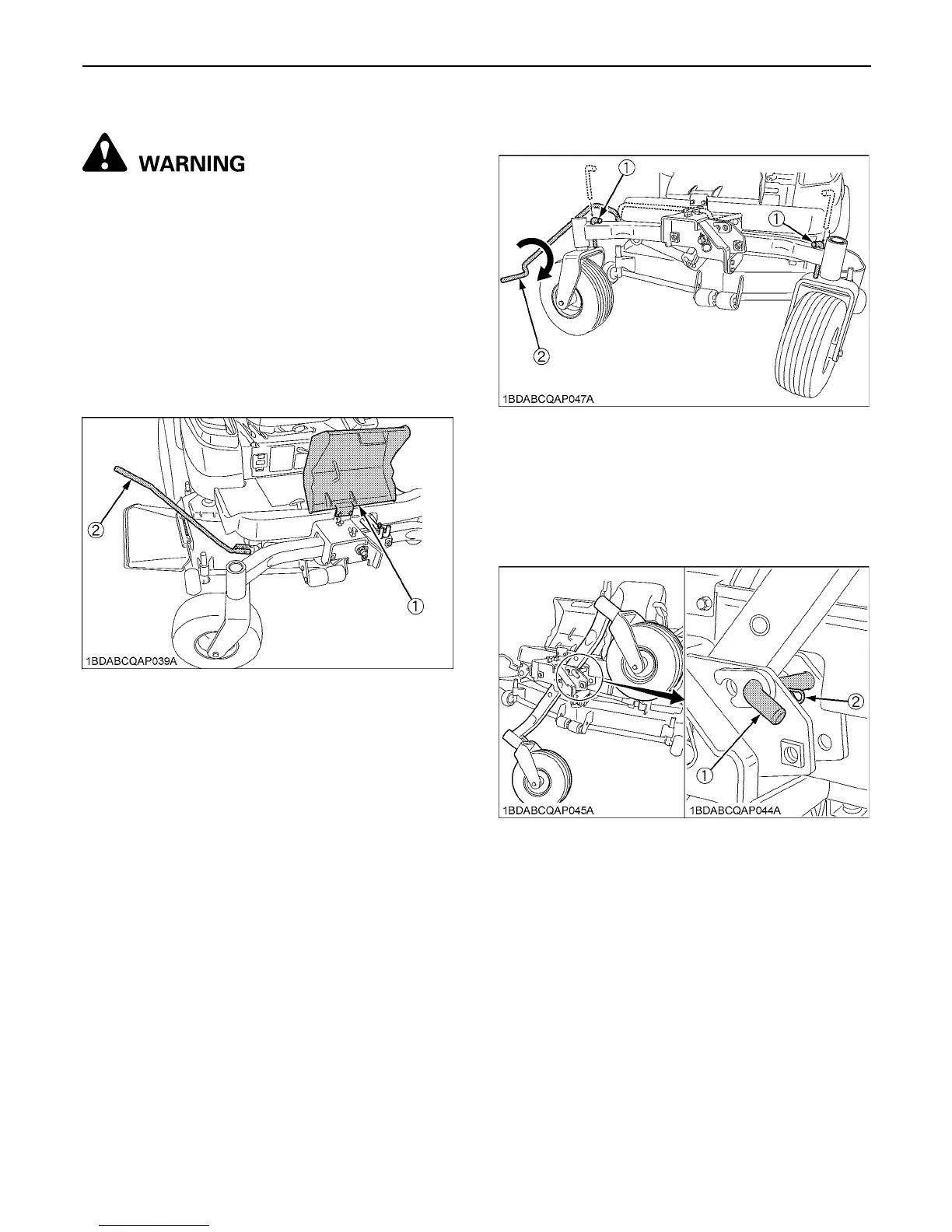 1. Lower the forward right anti-scalp roller to the lowest