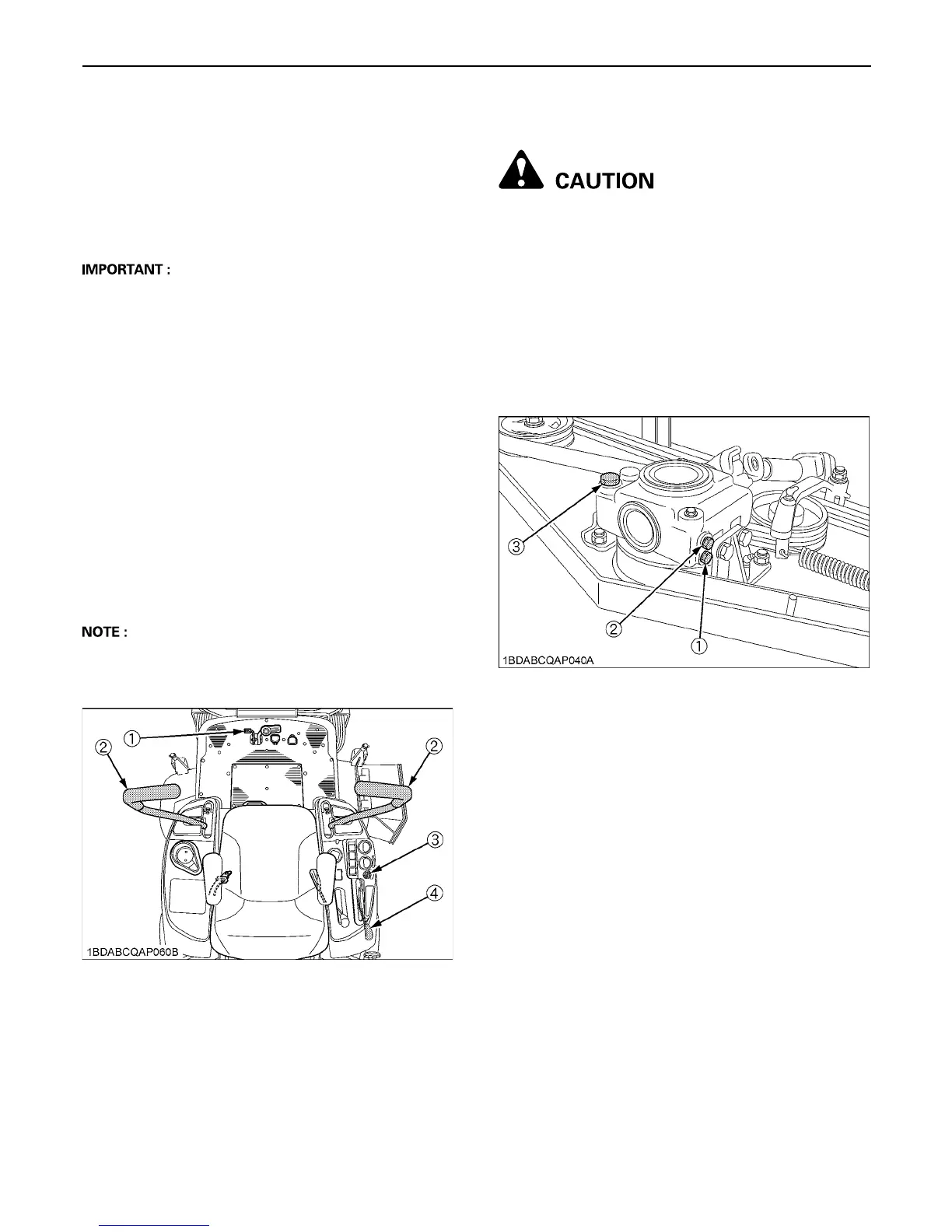 1. Park the machine on a flat surface and lower the