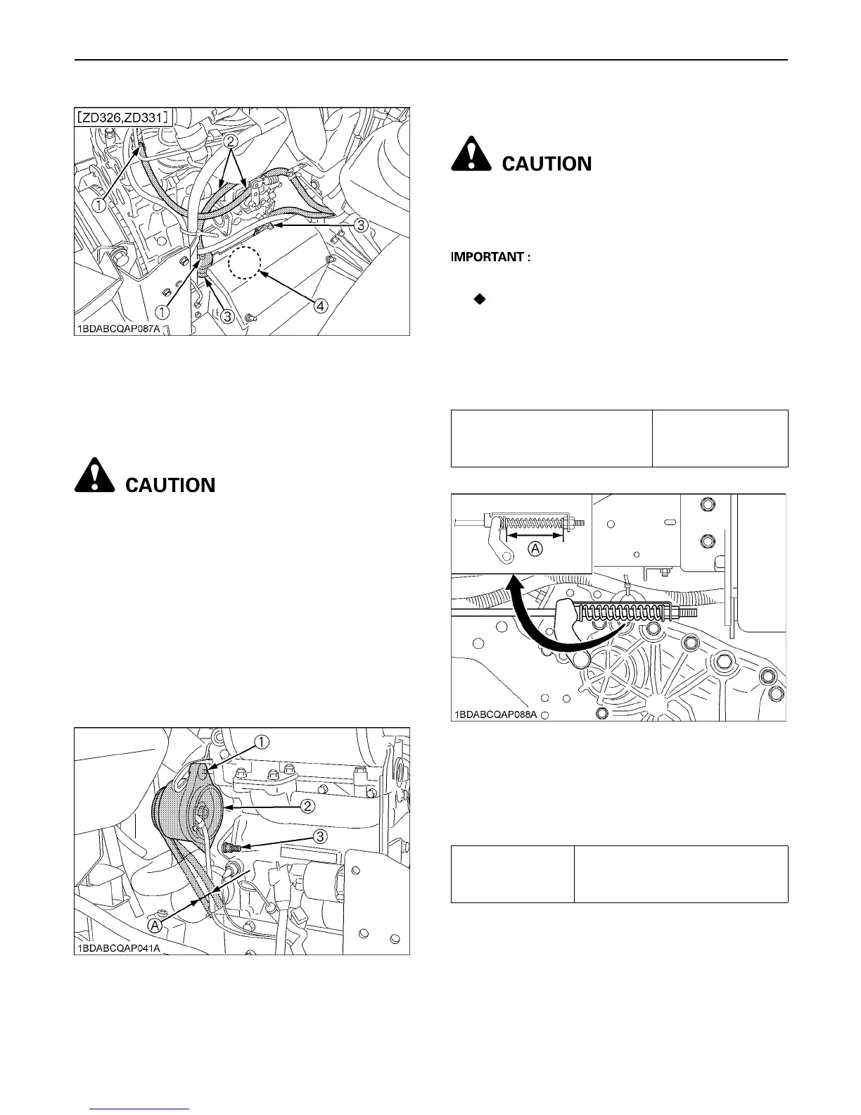 The belt should deflect approx. 10 mm (0.4 in.) when the