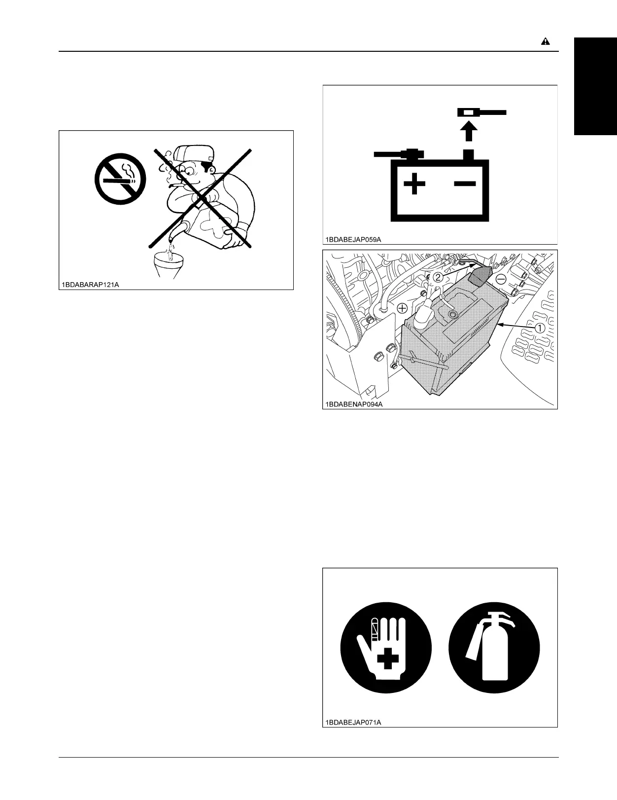 5. Do not smoke when working around battery or when