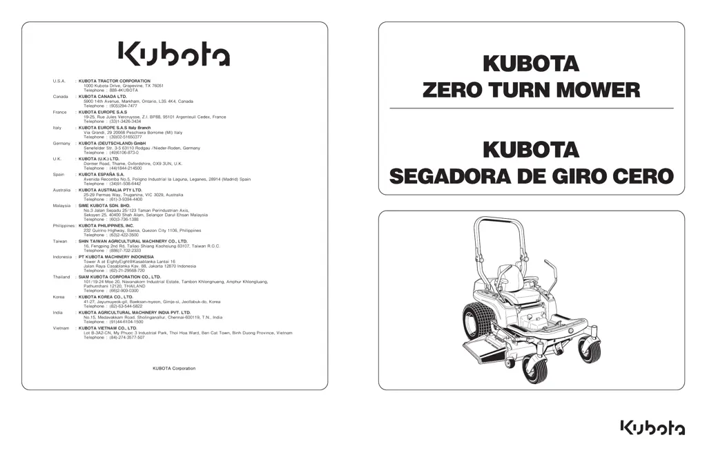 If your Kubota Lawn Mower engine is hard to start or refuses to start, several factors could be at play. Ensure you're sitting on the operator's seat and that the parking brake is applied. The PTO lever should be in the "DISENGAGED" (OFF) position, and the motion control levers should be in the "NEUTRAL LOCK" position. Also, verify that the key switch is in the "ON" position and the carburetor fuel drain valve is in the "RUN" (OPEN) position. Other potential causes include: * No fuel: Replenish fuel. * Improper or stale fuel: Replace the fuel and fuel filter. * Water or dirt in the fuel system: Replace the fuel and consult your Kubota dealer. * Clogged or damaged fuel hose or fuel filter: Clean or replace fuel lines and consult your Kubota dealer. * Clogged air cleaner: Clean o...