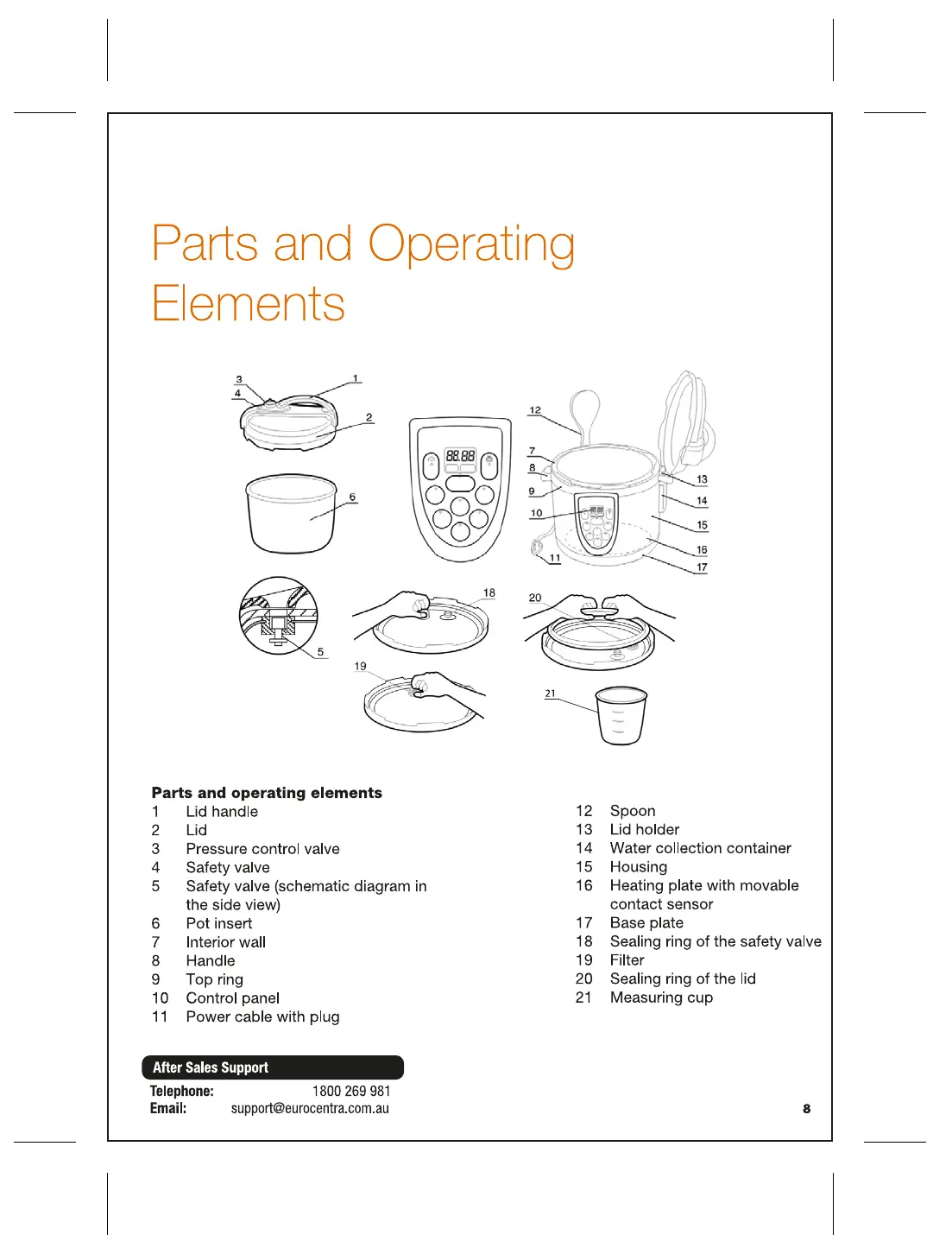 Kuchef EC-EPC-01 - Parts and Operating Elements; Parts and operating elements