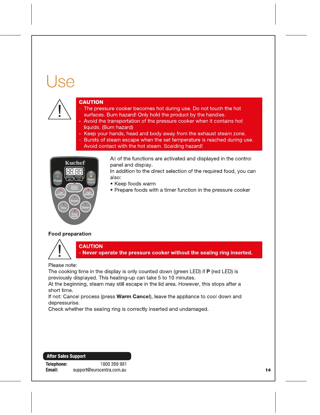 Kuchef EC-EPC-01 - Use; Important Operating Warnings; Food preparation