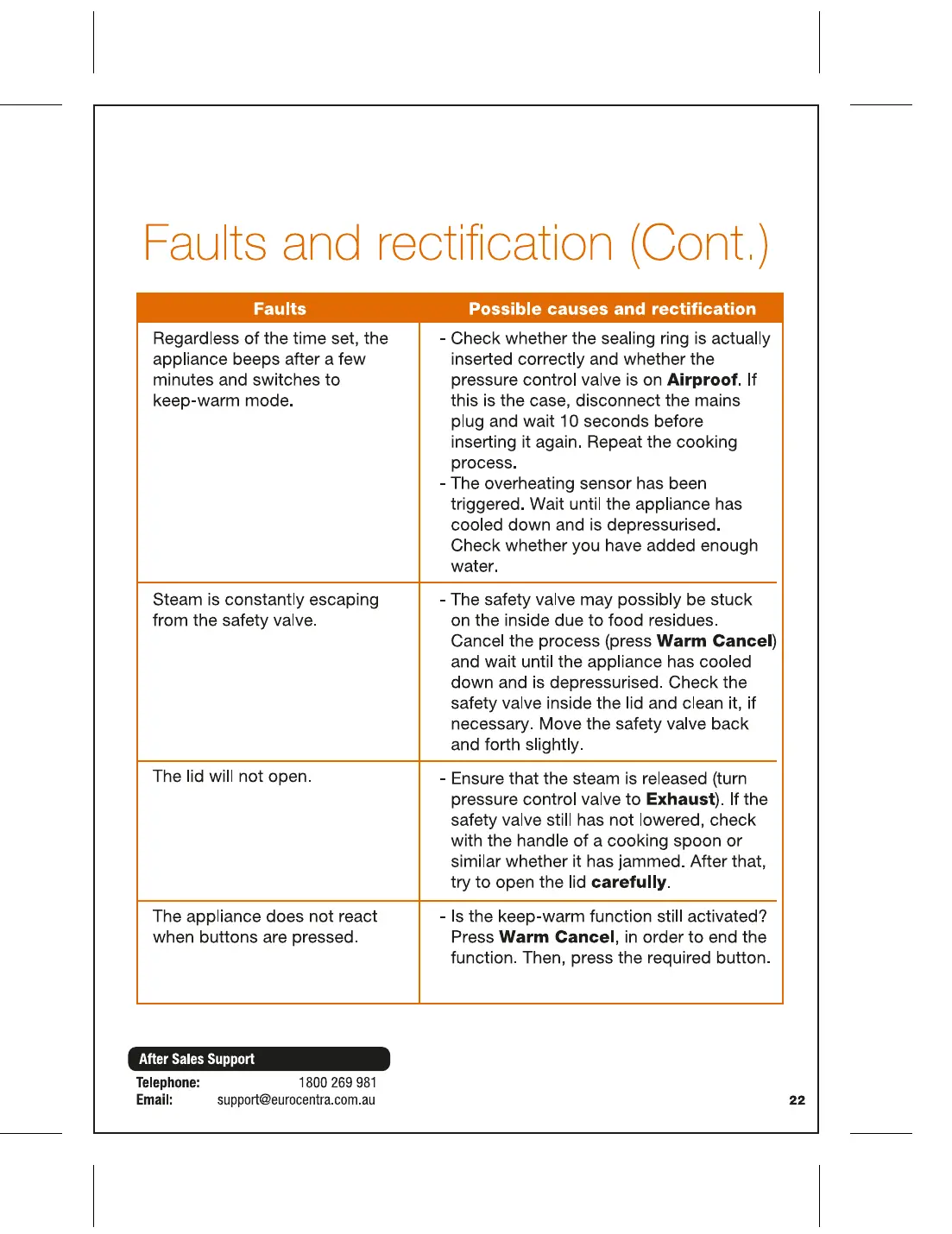 Kuchef EC-EPC-01 - Faults and rectification (Cont.); Faults and Rectification Guide