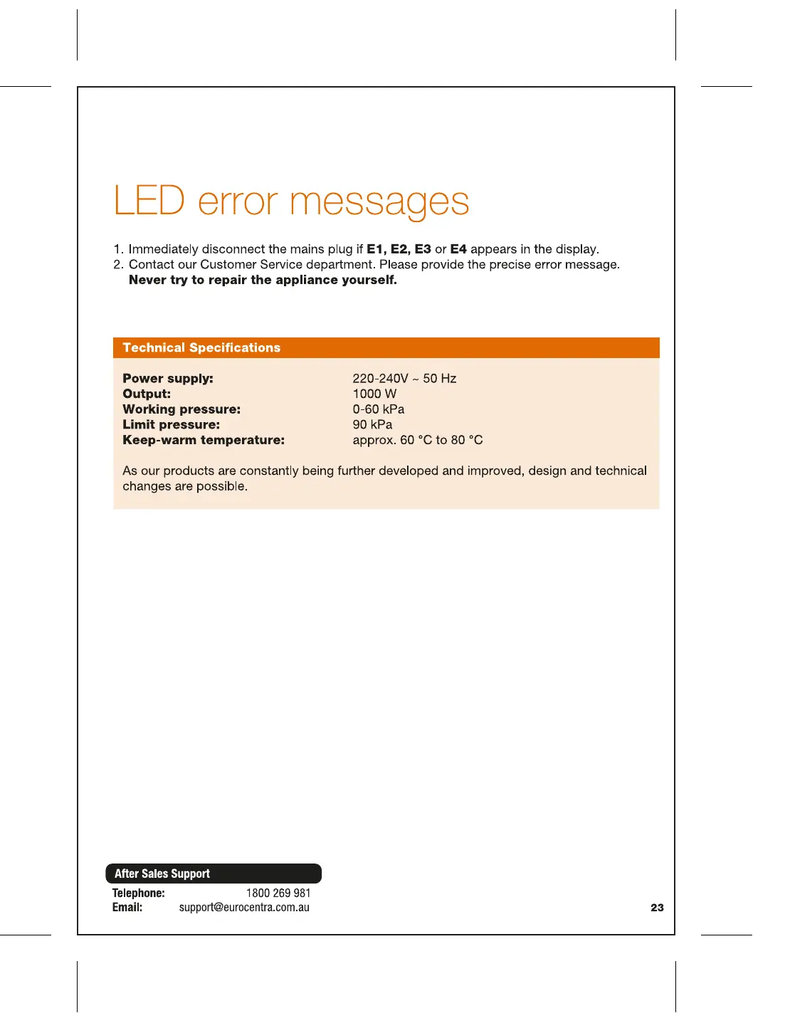 Kuchef EC-EPC-01 - LED error messages; Technical Specifications