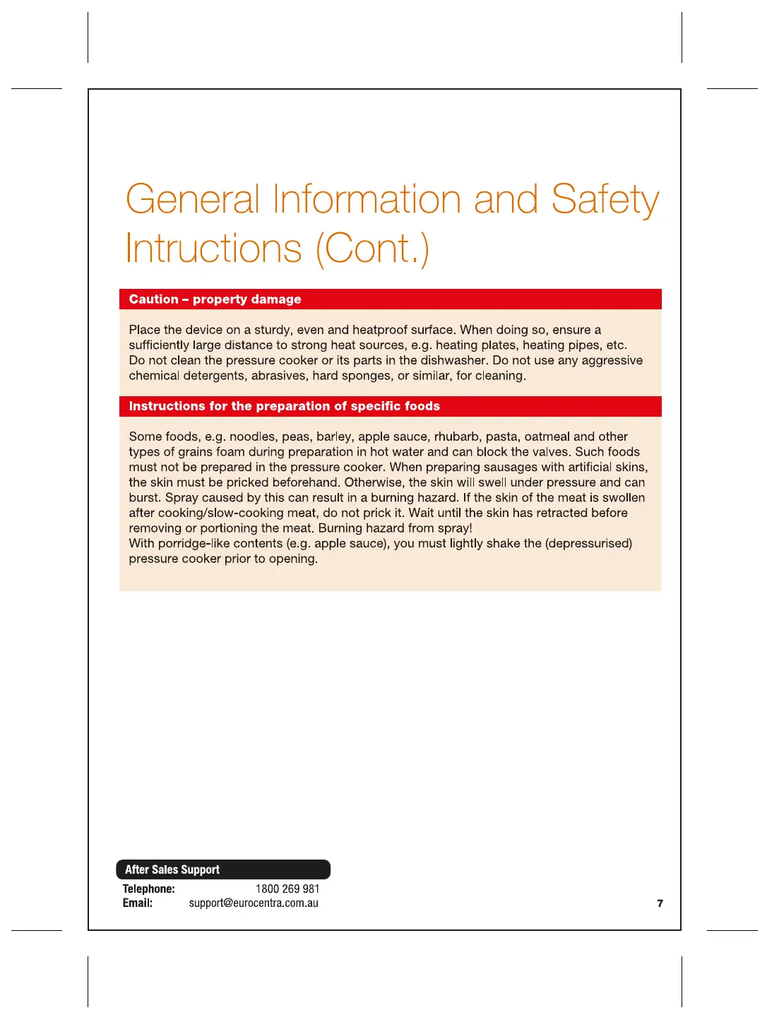 Kuchef EC-EPC-01 - Caution - property damage; Instructions for the preparation of specific foods