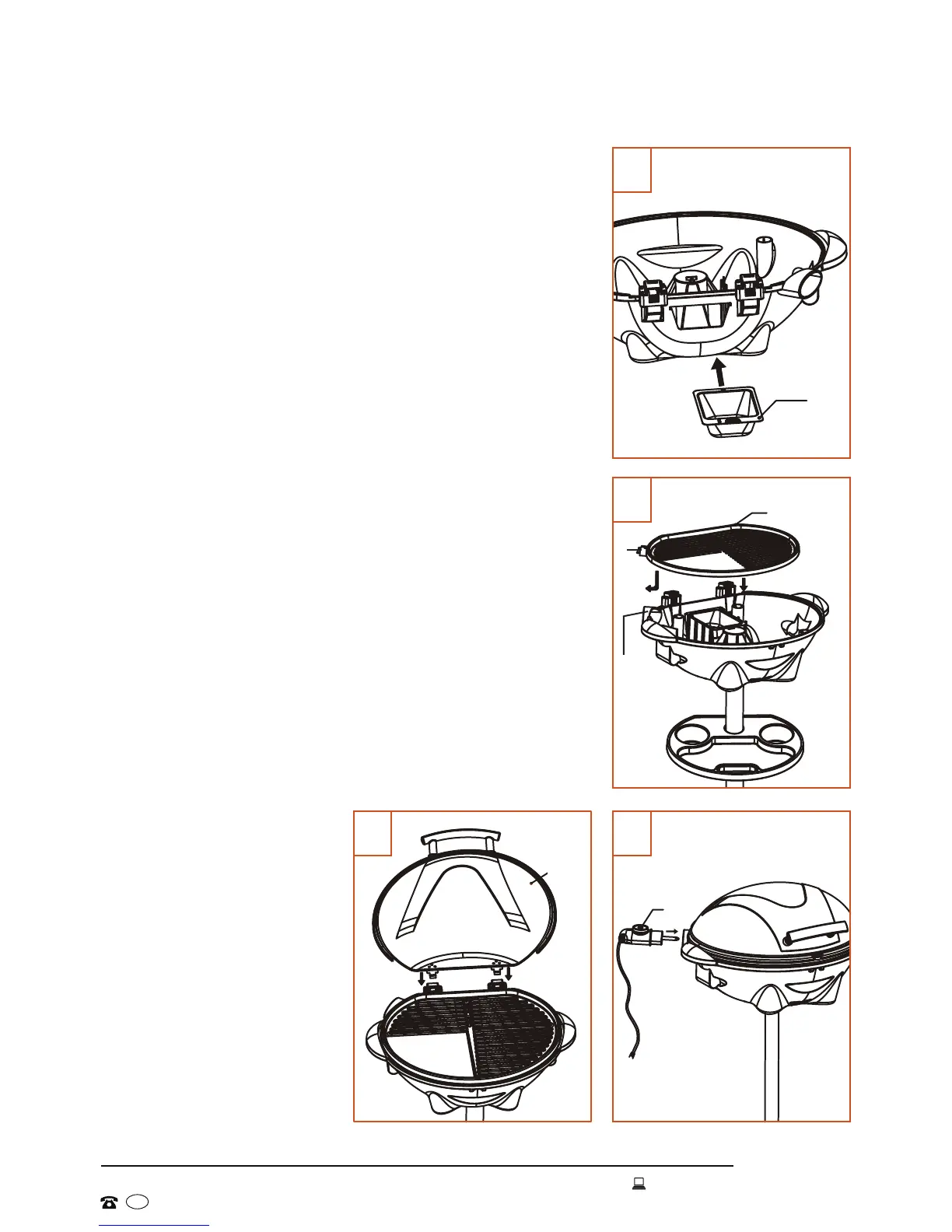 9. To attach the grill hood (1) to the base (5),