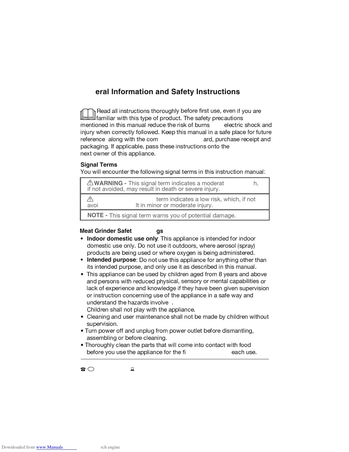 Meat Grinder Safety Warnings