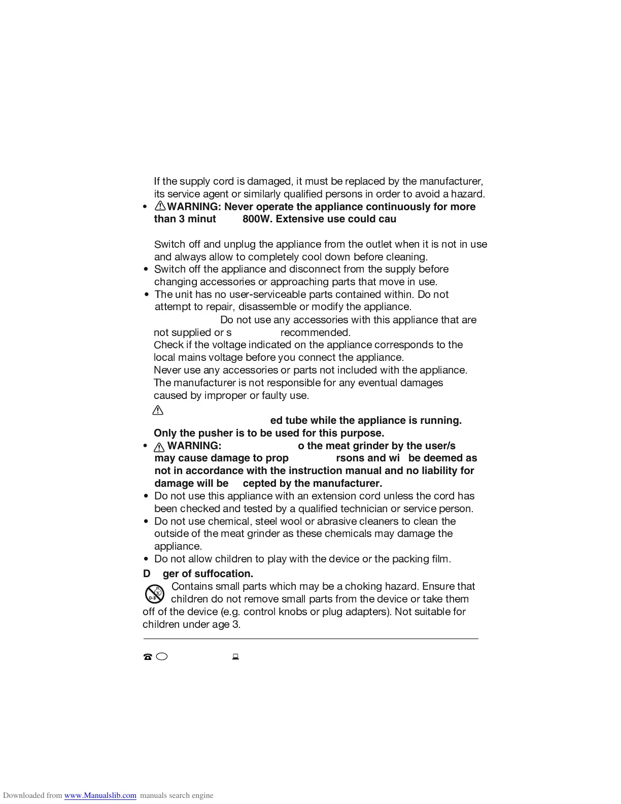 than 3 minutes at 800W. Extensive use could cause this appliance