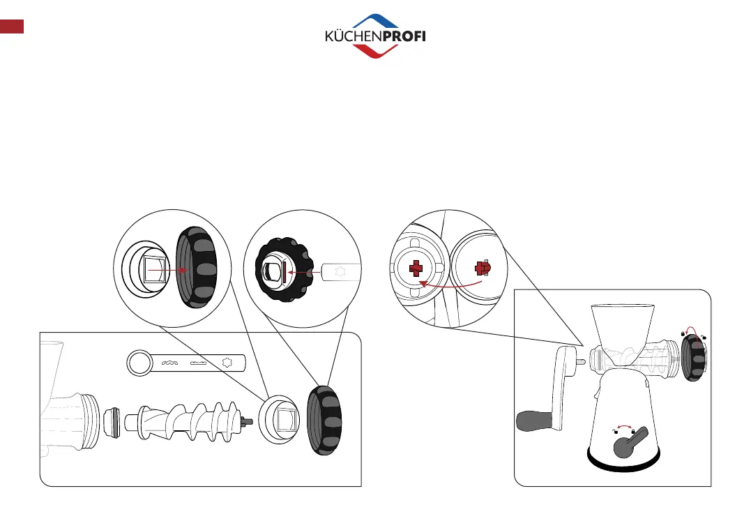dans la bague de fixation et assemblez le hachoir à viande suivant