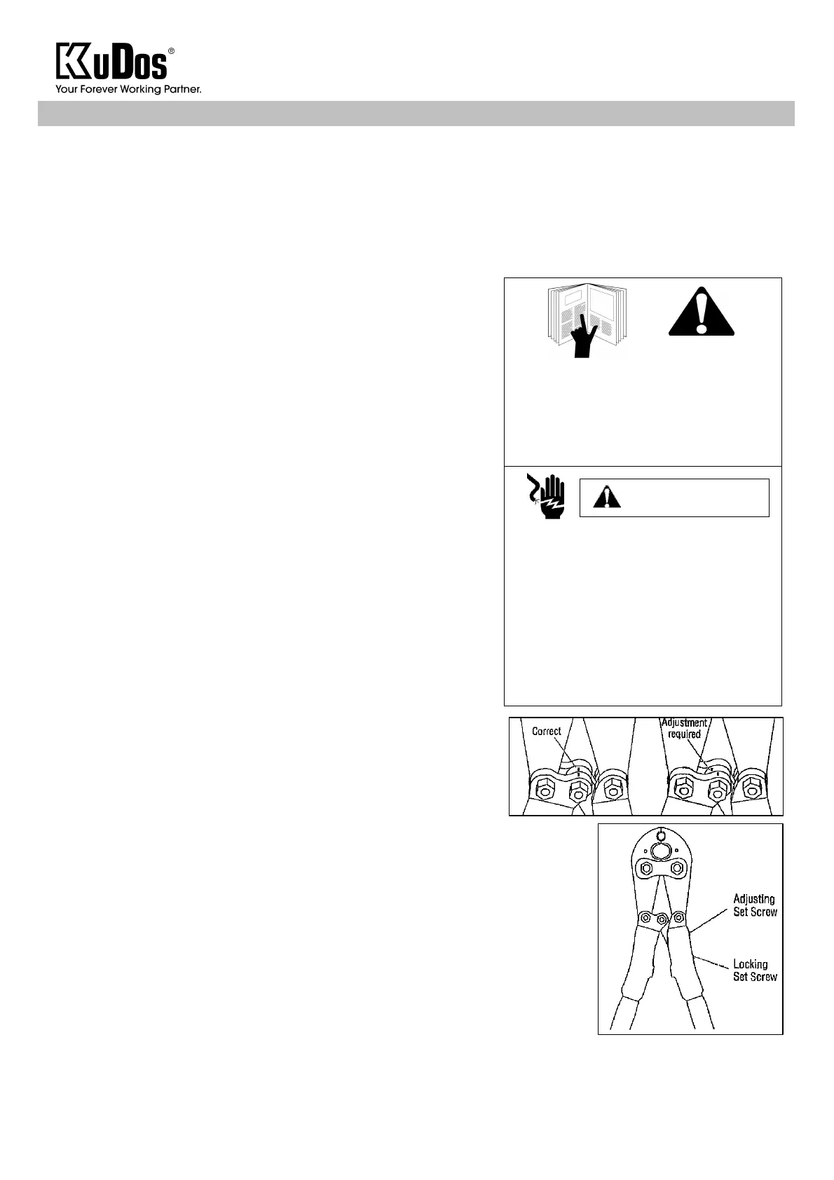- Inspect tool before use. If any parts are worn or damaged, send the tool to an authorized Kudos Service center.