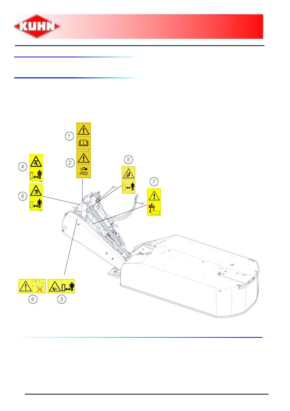 KUHL GMD310 - Location and description of safety decals on the machine