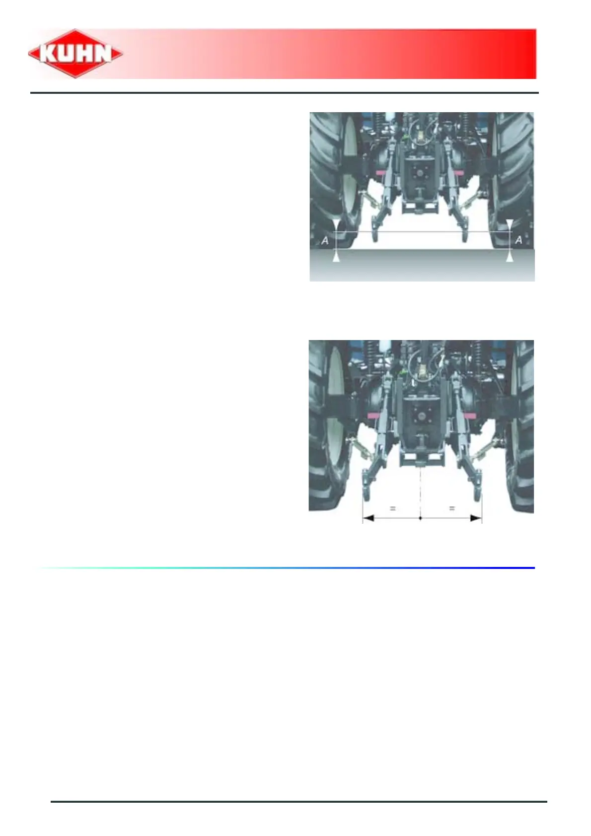 - Adjust tractor lift rods so that hitch pins are parallel to