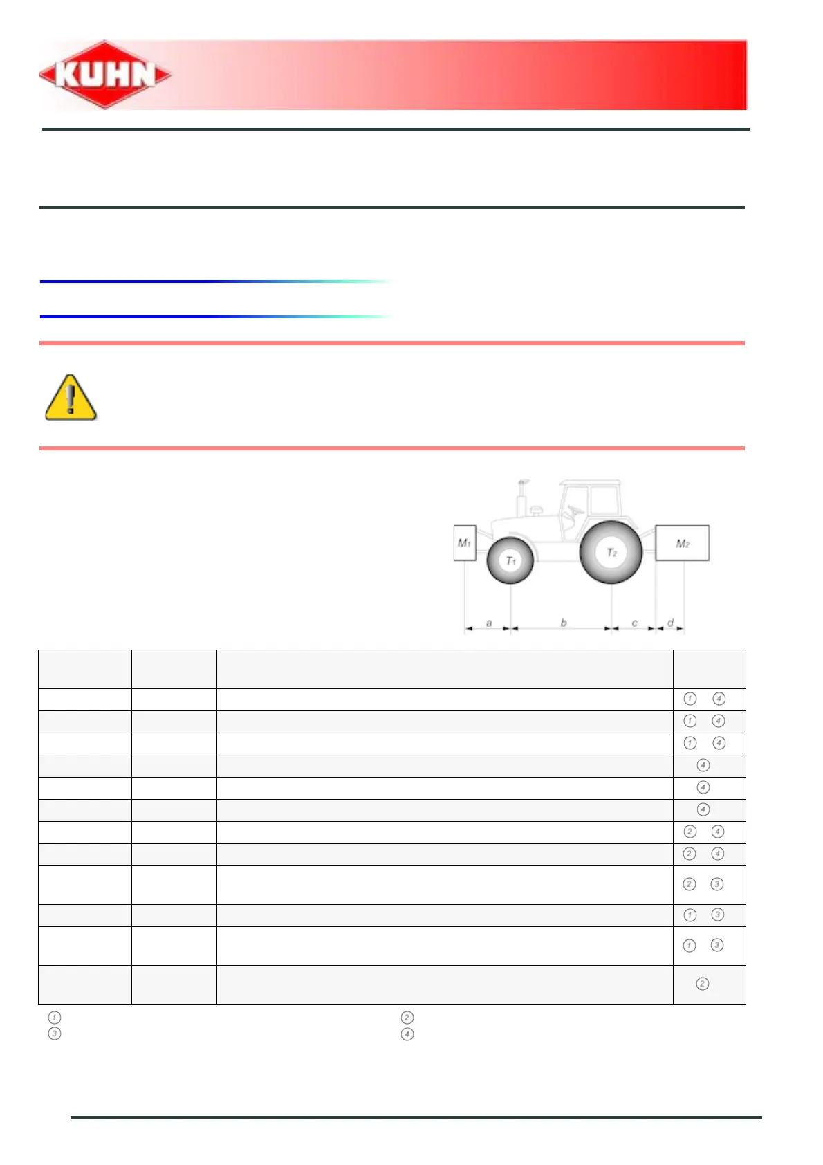 The load on the tractor front axle must always represent 20 % of the tractor unladen weight.