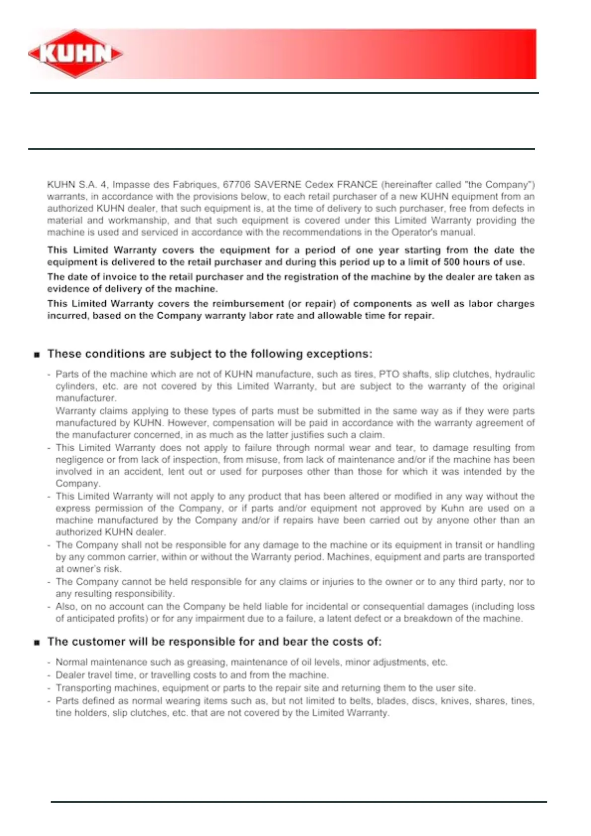 KUHL GMD310 - Limited Warranty