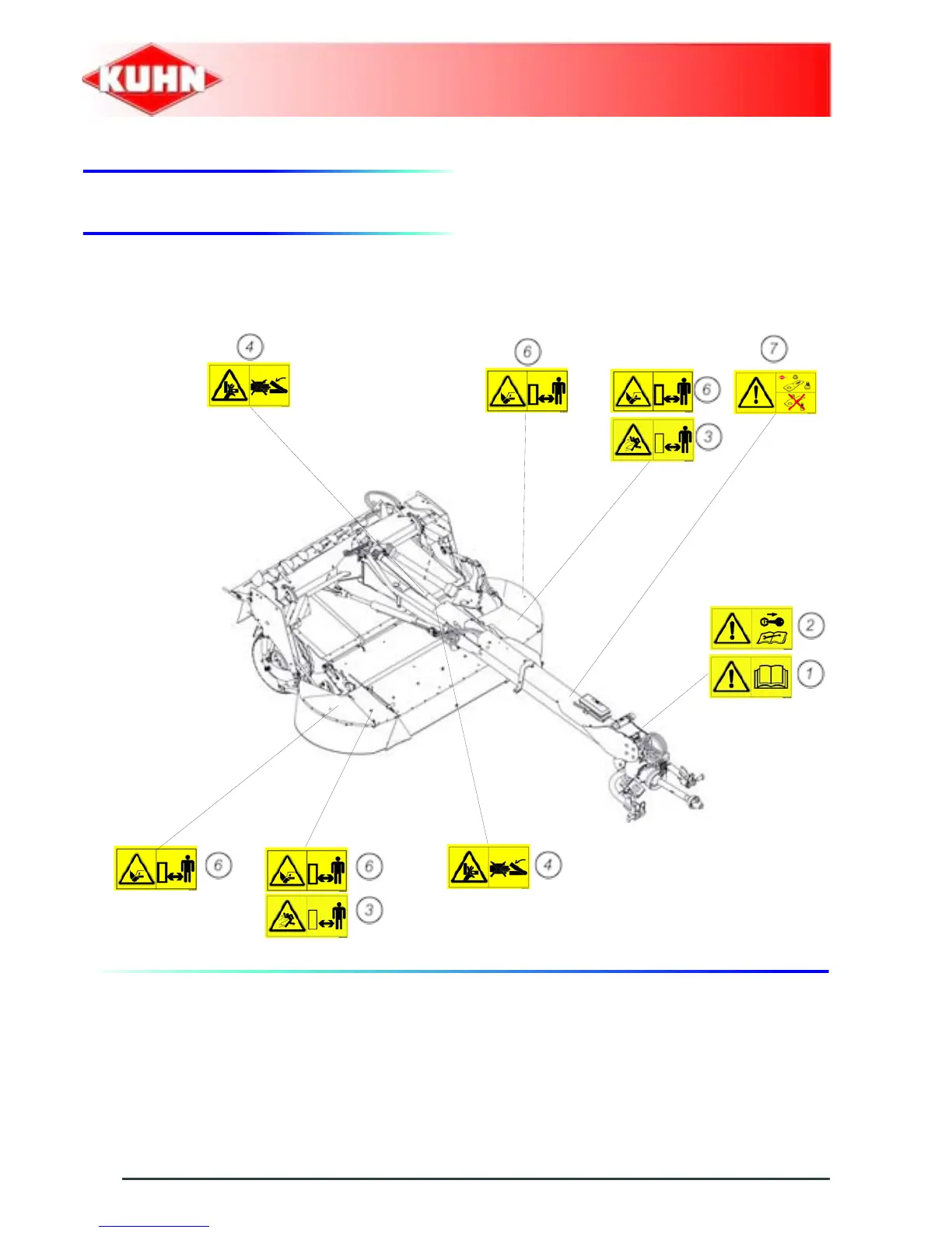 KUHN 4060TCD - Location and Description of Safety Decals on the Machine; Location of Safety Decals
