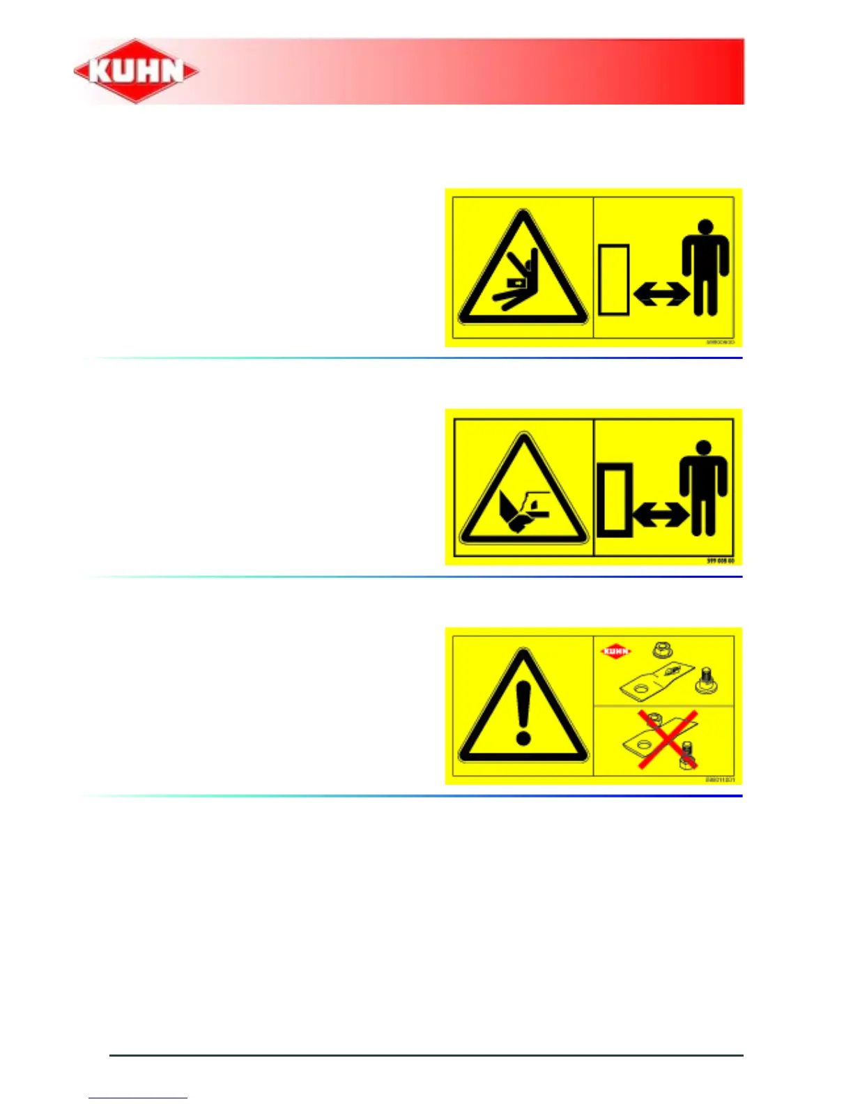 Keep away from the mower knives all the time the