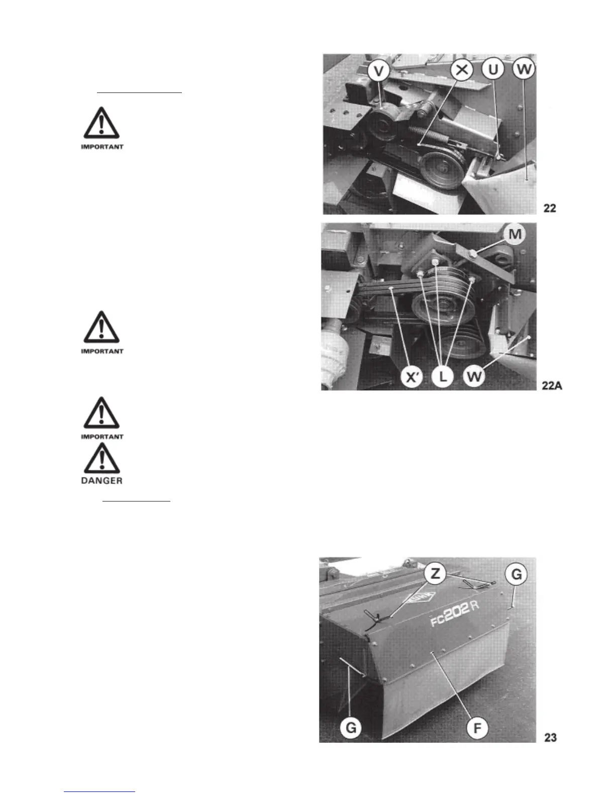 Make sure that the guard (W) of the drive belts is always in place. This