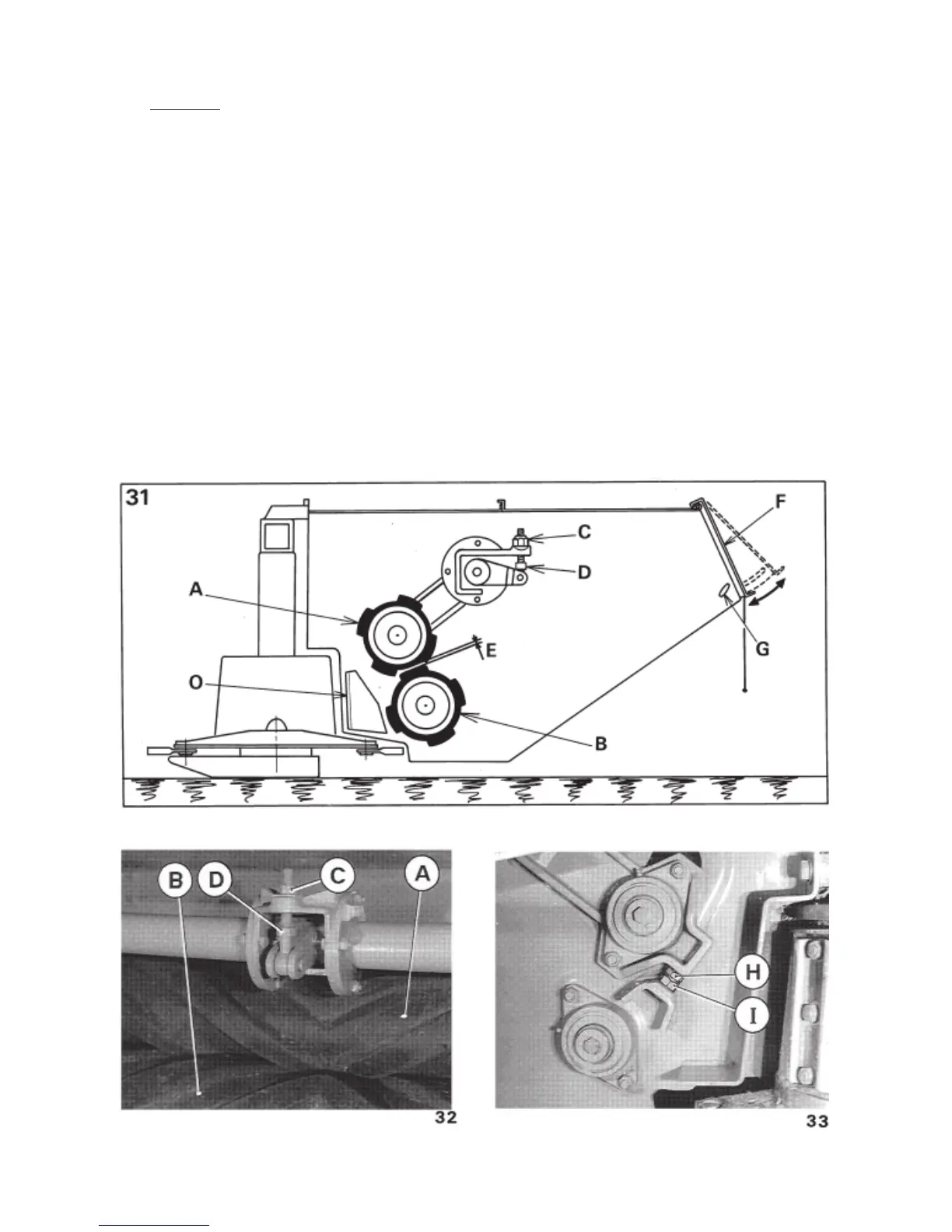 After adjusting bolt (H) do not forget to retighten lock nut (I) (photo 33).