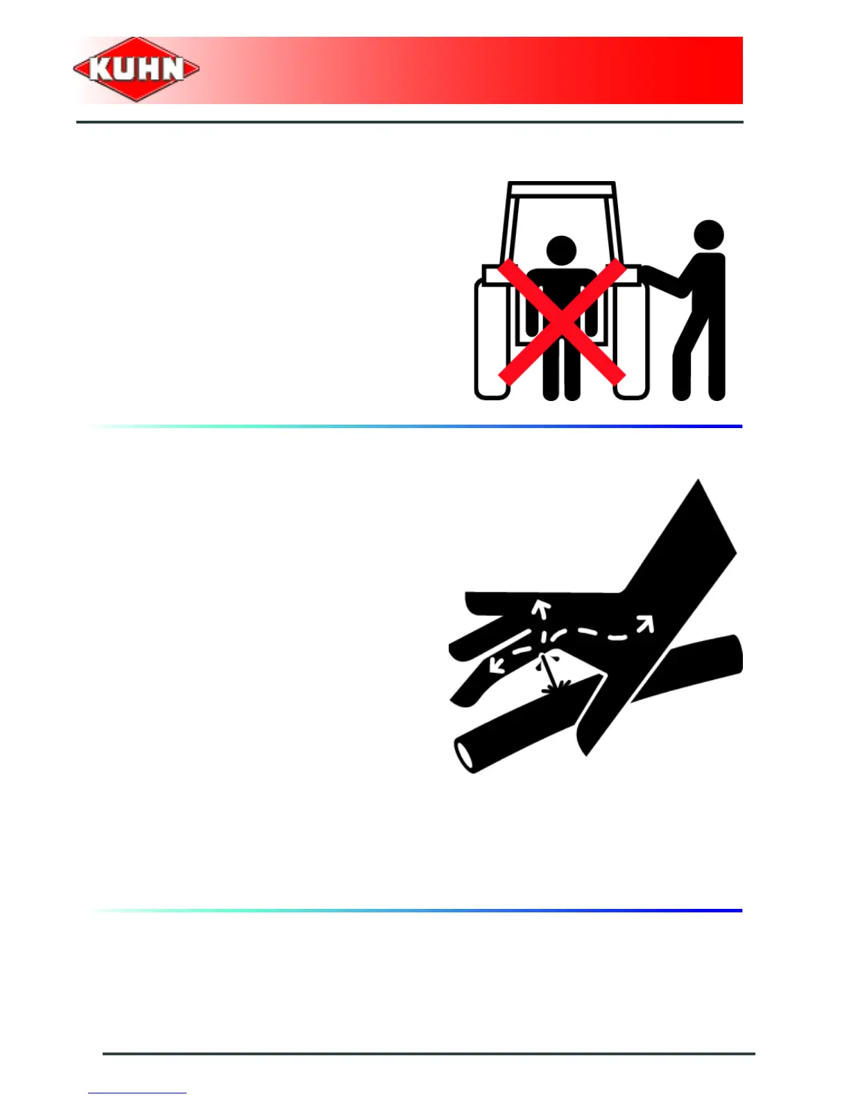 Do not stand between the tractor and the machine