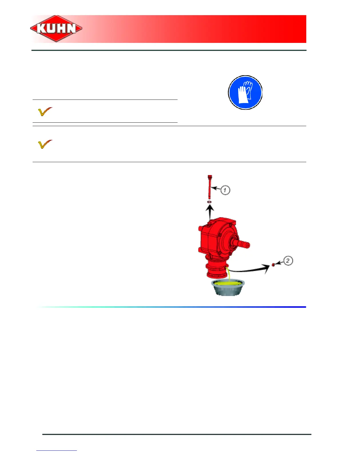 - Check angle gearbox oil level: