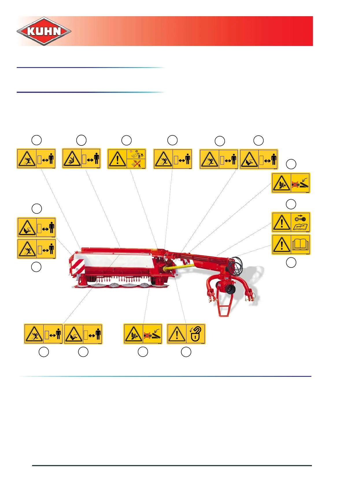 KUHN FC302G - Location and Description of Safety Decals on the Machine; Location of Safety Decals