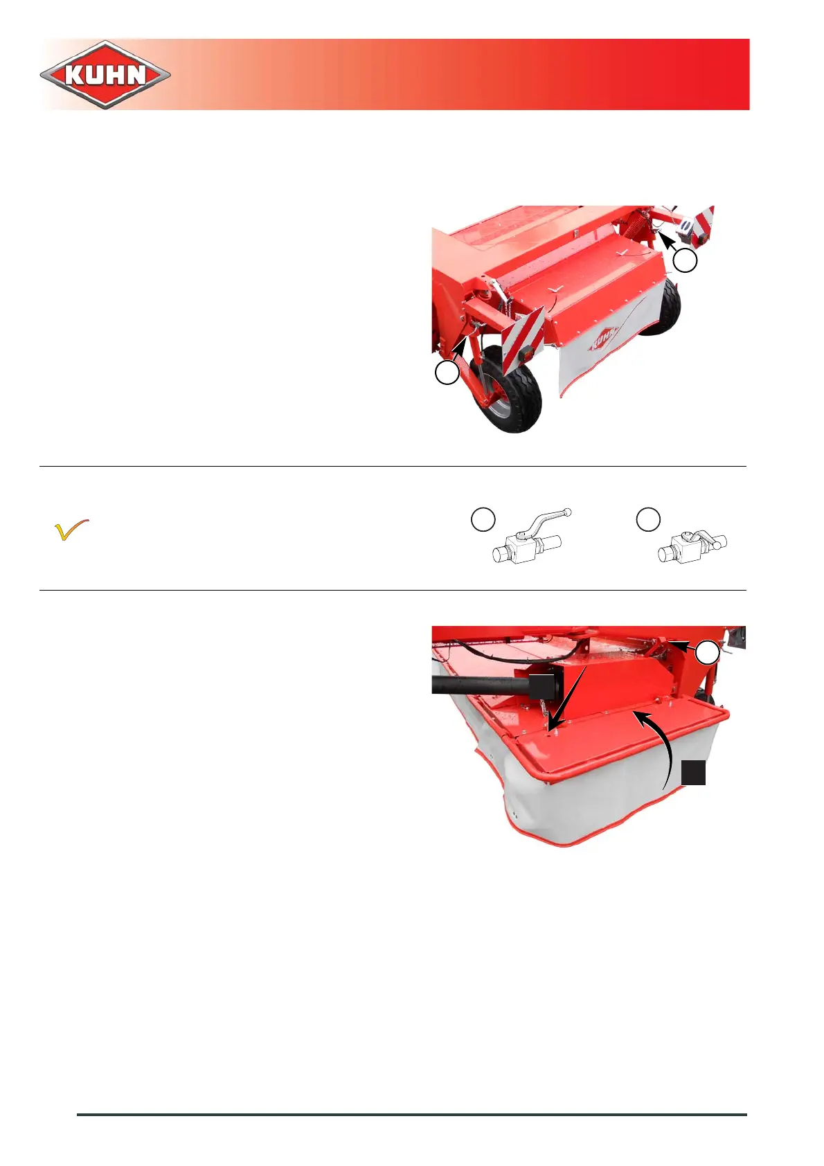 - Shut-off mowing unit lift cylinder lock valves (1).