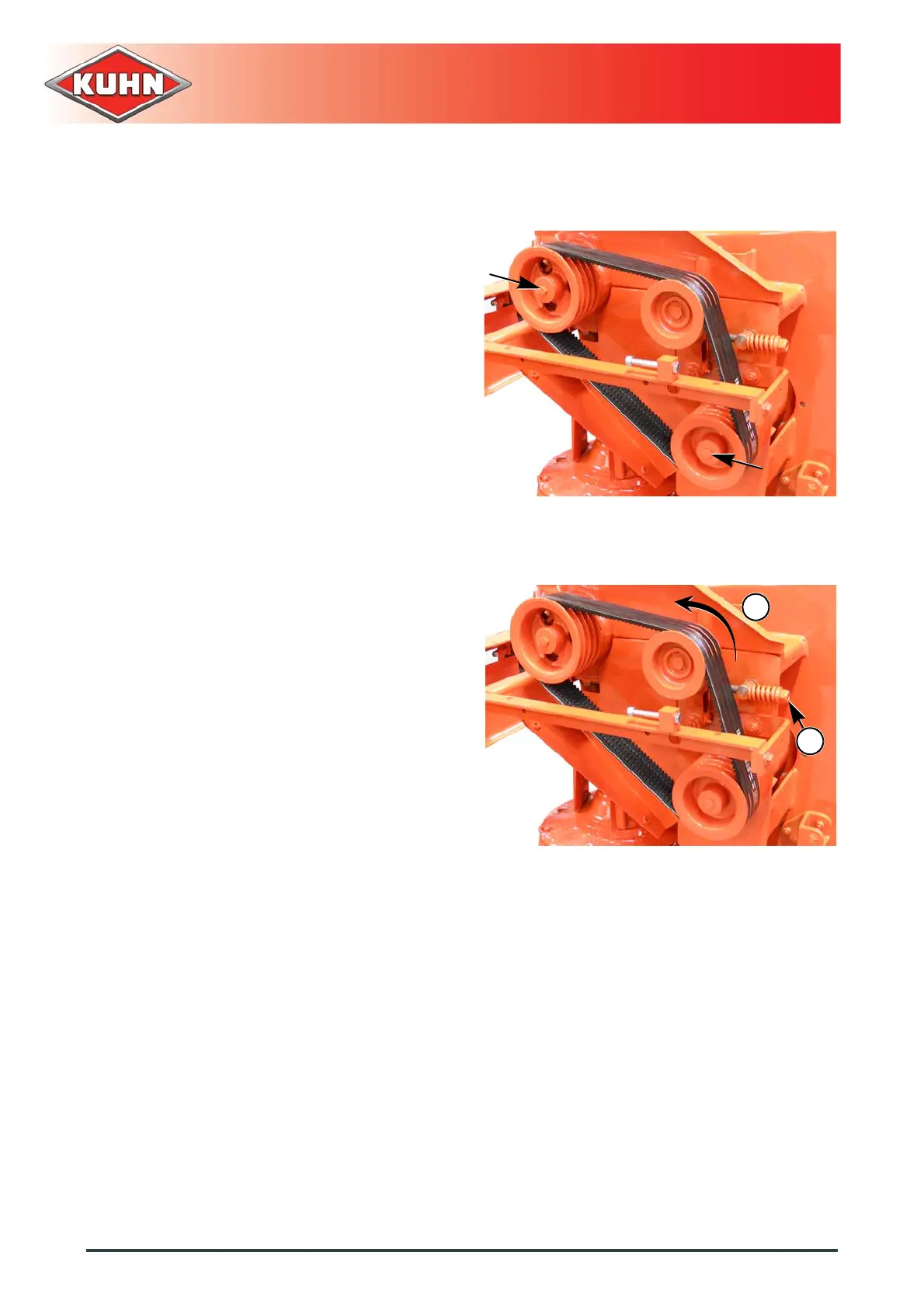 - Loosen belt tensioning bolt using box spanner (1).