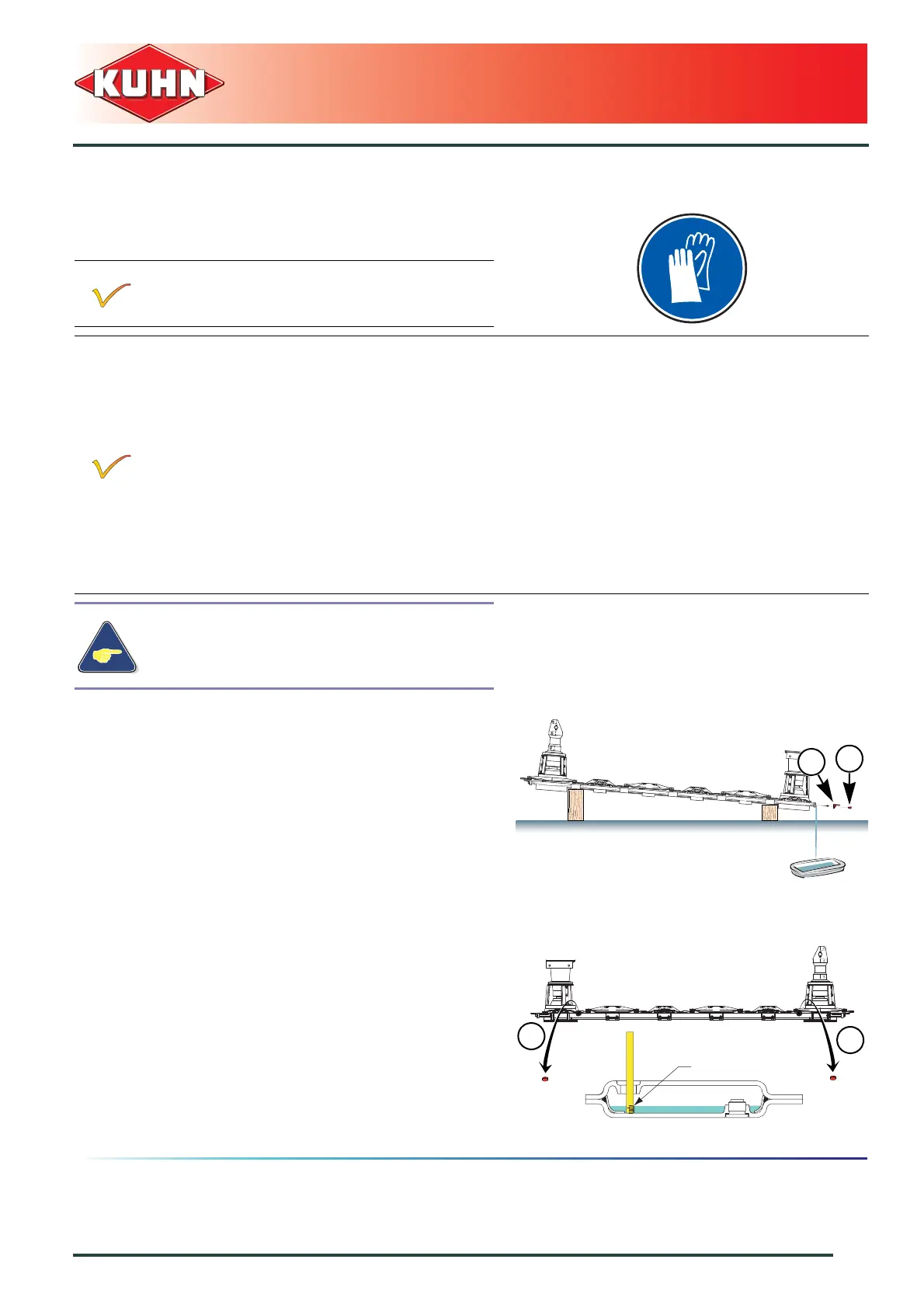 The cutterbar is lubricated with 2.25 L (0.59 US gal) of extreme-pressure gear oil with viscosity grade