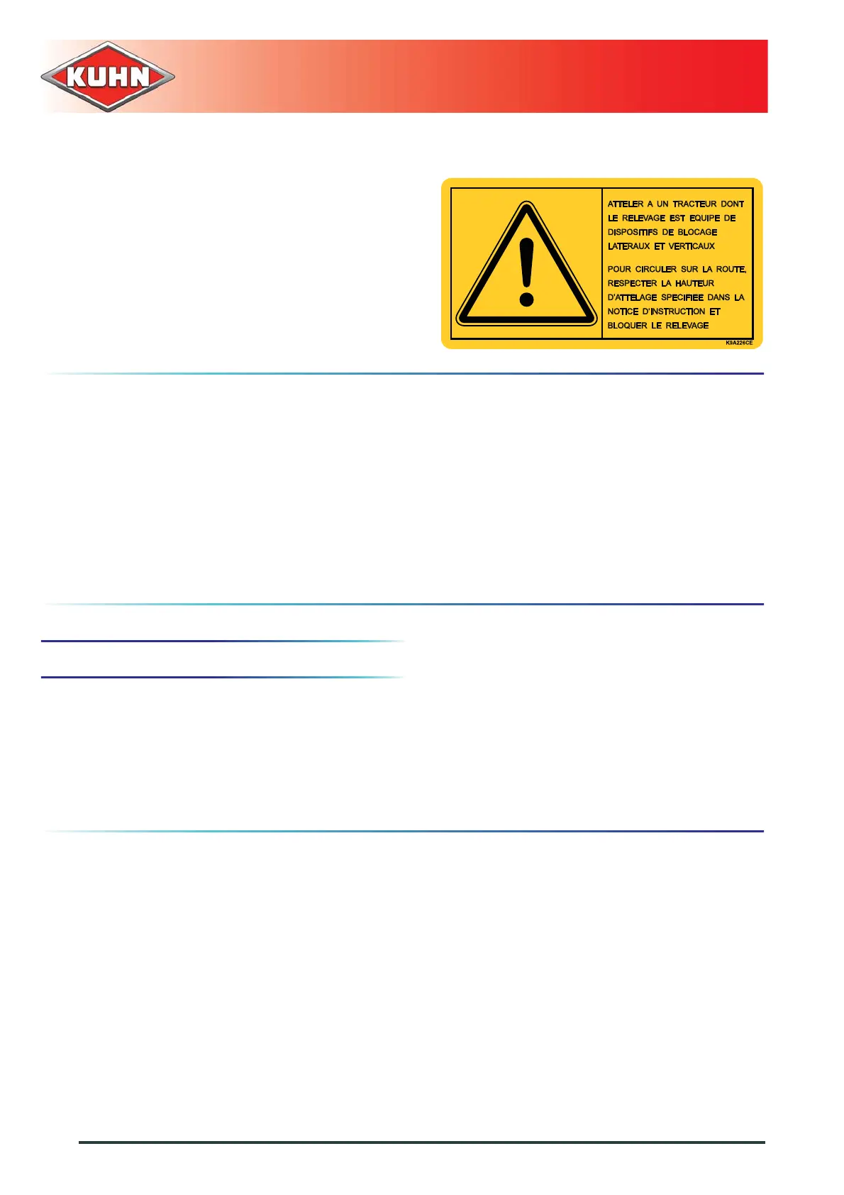- To drive on roads, respect the attachment height