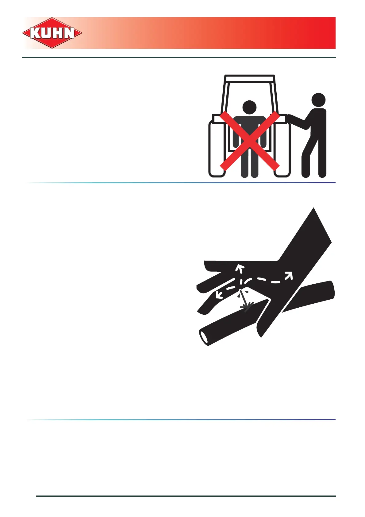 Do not stand between the tractor and the machine