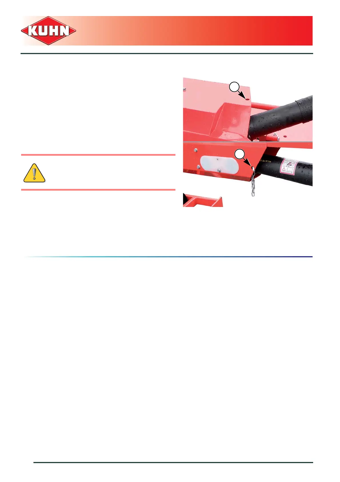 Attach PTO shaft guard chain in hole (1) on machine