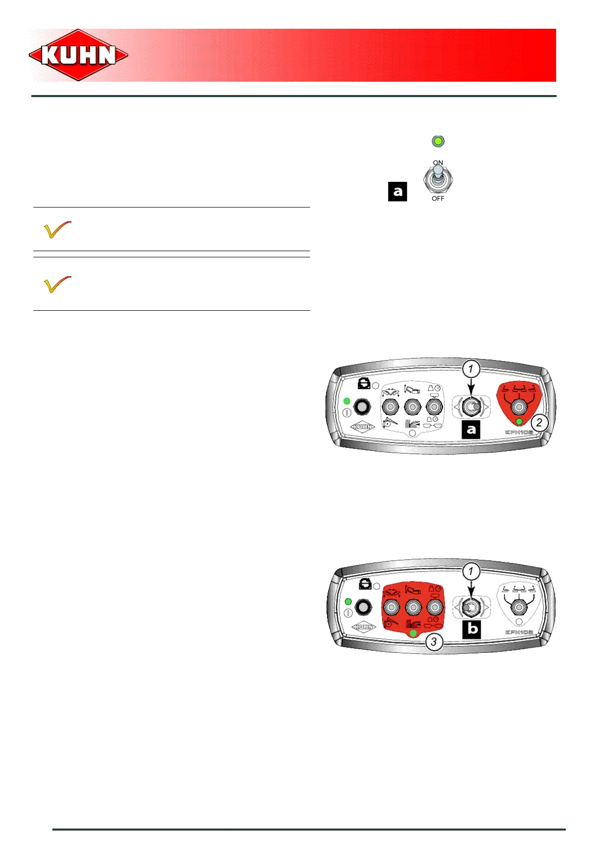 Toggle switch (1) in position (a) activates area (2).