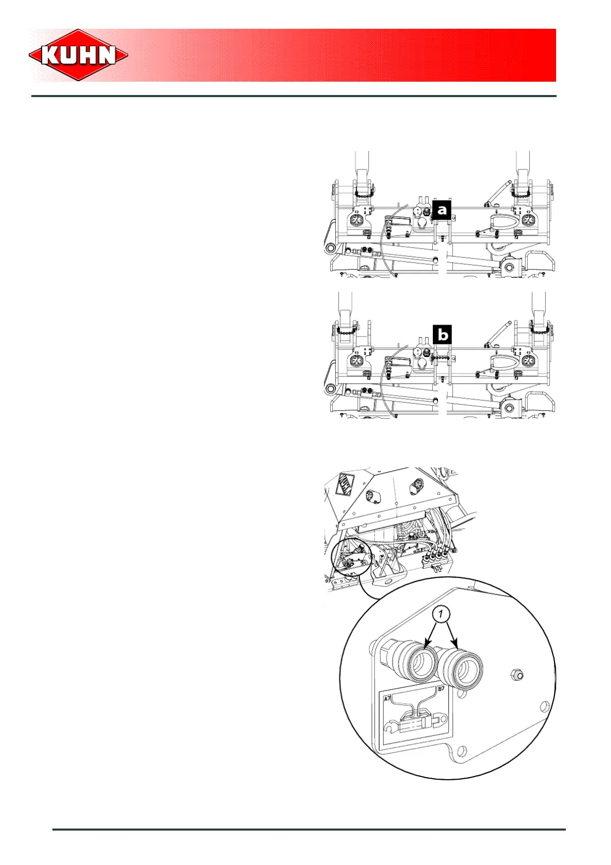 - Connect the 2 top link hoses to the 2 couplers (1).