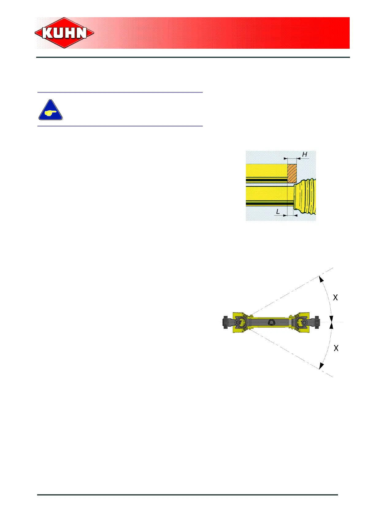Never operate the PTO shaft at an angle X exceeding